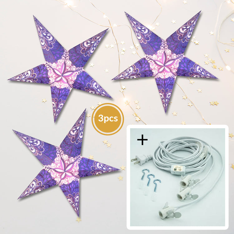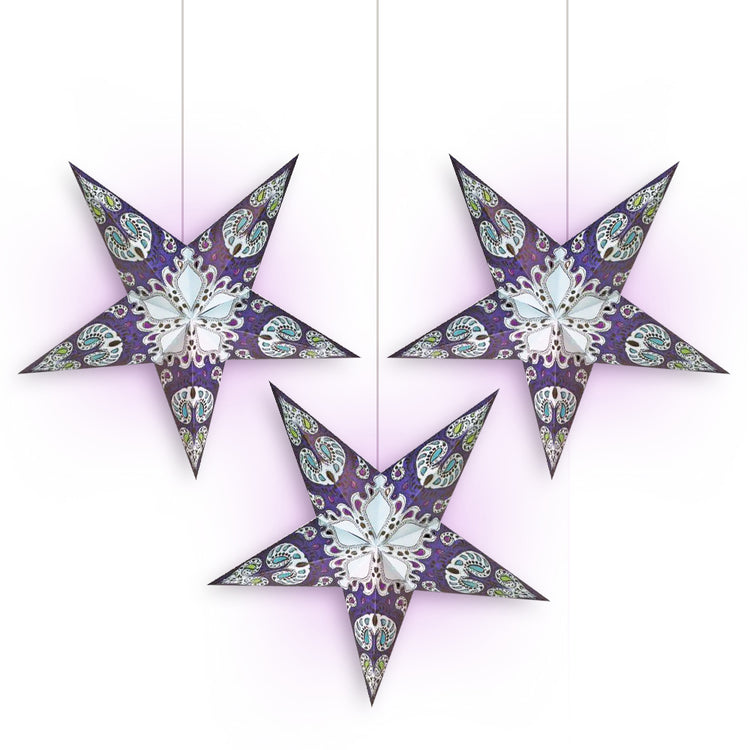 3-PACK White Liberty 24" Illuminated Paper Star Lanterns Hanging Decorations