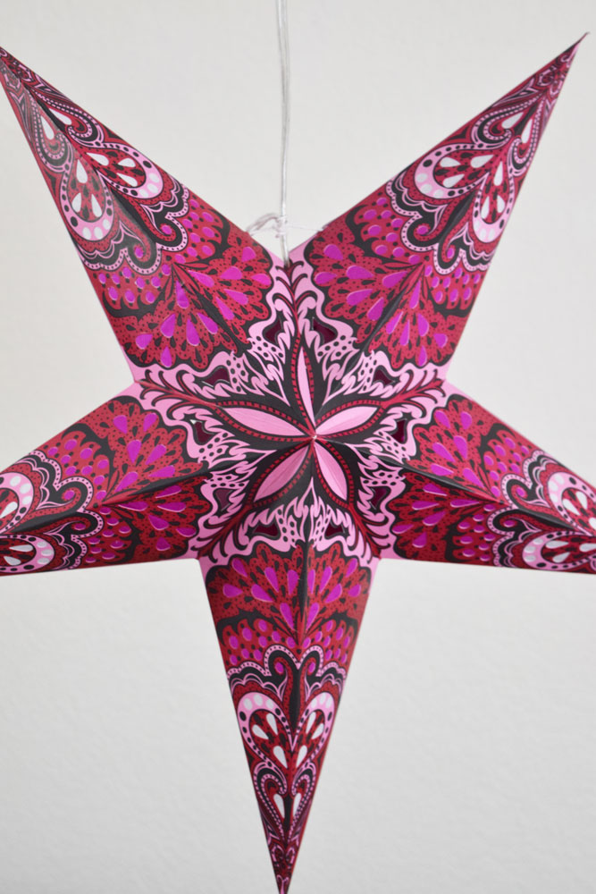 flourishist’s hand-crafted hanging Paper Star Lanterns are beautiful as a home decor accessory or as an outdoor Wedding decoration. These star lantern lamps are high-quality – made from thick paper and punched with a special star design. Available in many colors and patterns, our unique star lanterns can be seen hung on the sets of many Hollywood movies and TV shows. Makes a beautiful display or decoration in any room in the home. Adds a fun touch to any party or event. Pair with one of our Wedding Decorations. These star lantern lamps are high-quality – made from thick paper and punched with a special star design. Available in many colors and patterns, our unique star lanterns can be seen hung on the sets of many Hollywood movies and TV shows. Makes a beautiful display or decoration in any room in the home when paired with one of our lamp cord kits.